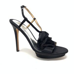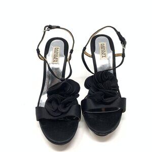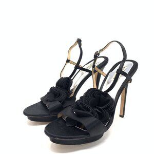 Badgley Mischka Black Satin Floral High Heel Sandals 10 Elegant Evening Shoes