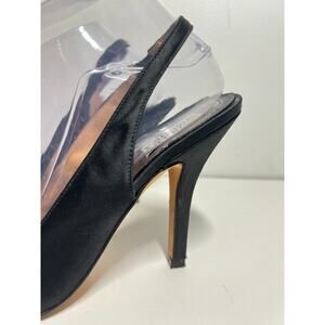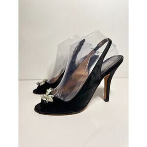 Badgley Mischka Black Satin Slingback 4.5" Heel Rhinestone Adorned Pump Shoe 8.5
