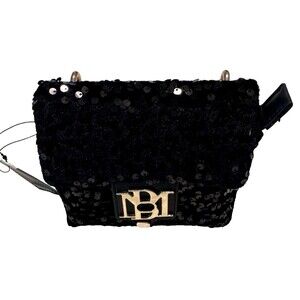 Badgley Mischka Black Sequin Metal Handle Bag 5x6x3 BONUS CC wallet