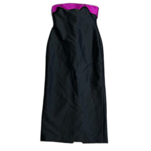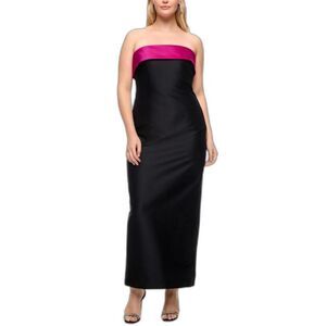 Badgley Mischka Black Strapless Orchid Pink Ribbon Detail Long Column Dress 14