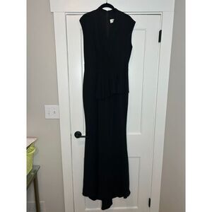 Badgley Mischka Black V-Neck Pleat Front Cap Sleve Gown Full Length Dress Size 8