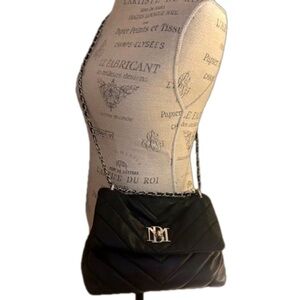 Badgley Mischka Black Vegan Leather Quilted Handbag