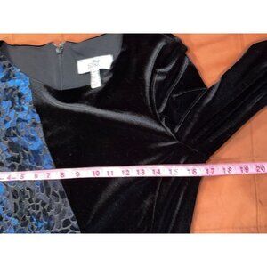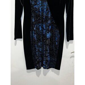 Badgley Mischka Black & Blue Velvet Long Sleeve Elegant Cocktail Wear Women's Dress Size 10