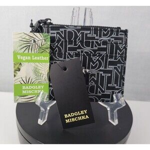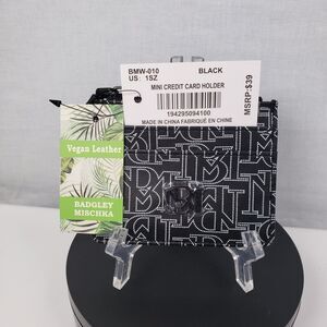Badgley Mischka Black White Logo Monogram Mini Credit Card Holder Coin Wallet