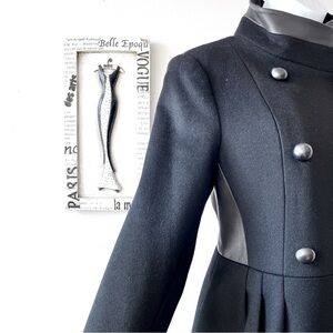 Badgley Mischka Black Wool And Leather Women’s Fall Winter Coat Size 6