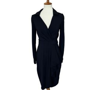 Badgley Mischka Black Wrap Sheath Dress Size 4 Career Polished Designer $440