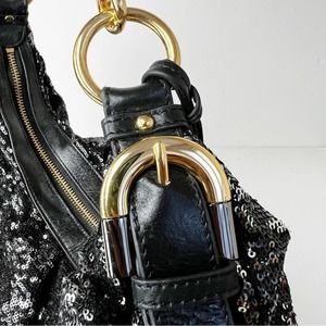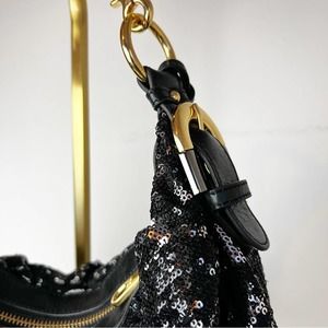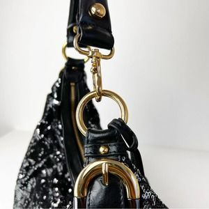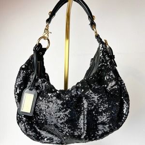 Badgley Mischka Black Sequin Hobo Bag Gold Hardware