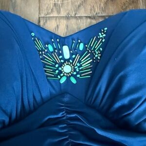 Badgley Mischka Blue Beaded Ruched One Piece Bathing Suit