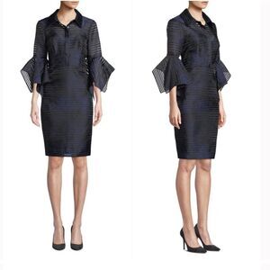 Badgley Mischka Sheer Striped Trumpet-Sleeve Shirtdress