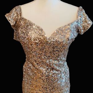 Badgley Mischka Blush Sequin Off Shoulder Gown Size 4