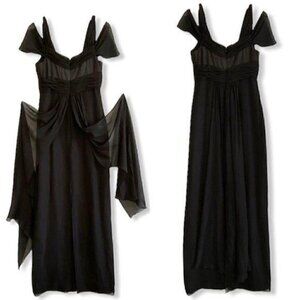 Badgley Mischka Bridemaids black shiffon cold shoulder gown, Size 8