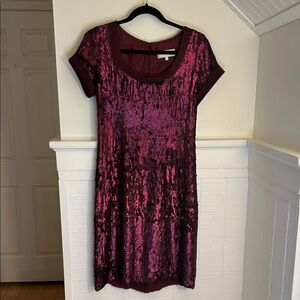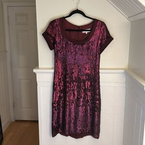Badgley Mischka Burgundy Sequin Silk Mini Dress size Women’s Size 6