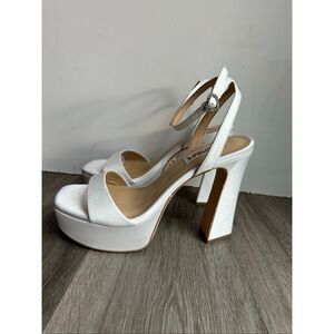 Badgley Mischka Caia 125MM Satin Platform Sandals in White Crepe US 8 $245