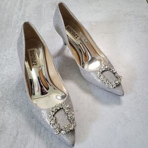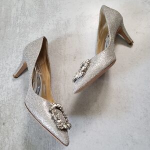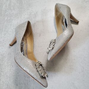 Badgley Mischka Carrie Crystal Embellished Pump Silver Glitter Heels SZ 6.5