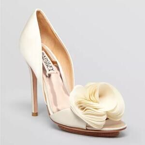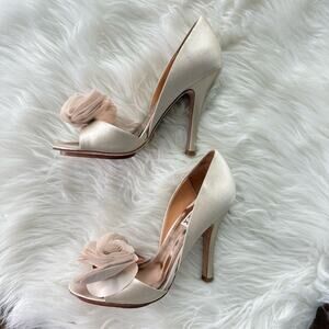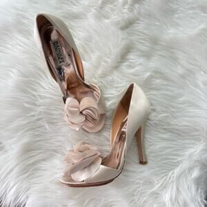Badgley Mischka Champagne Pump Bridal Satin D'orsey Heel Wedding Cream Bride 7.5