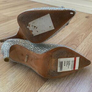 CONDITION: Looks new except the bottoms. LOVE these heels – they’re gorgeous! Unfortunately they don’t fit me (I’m a true 7 and was hoping these would work). Enjoy these stunning heels! By purchasing, you acknowledge this is not new and likely not in perfect condition. Please see pictures. Please let me know if you have any questions!