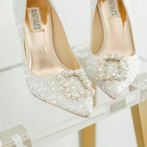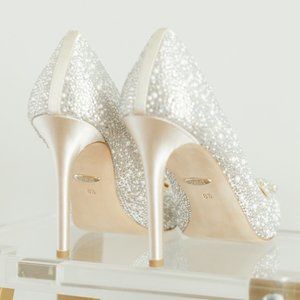 Badgley Mischka Cher II Ivory Satin 8.5 Women's Heels Wedding Pumps Bridal