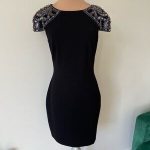 Badgley Mischka Collection Black Embellished Cap Sleeve Cocktail Dress EUC Sz 4