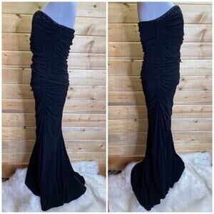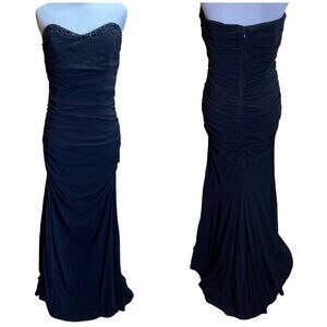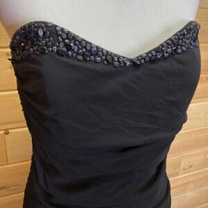 Badgley Mischka Collection Black Ruched Beaded Strapless Dress Size 6