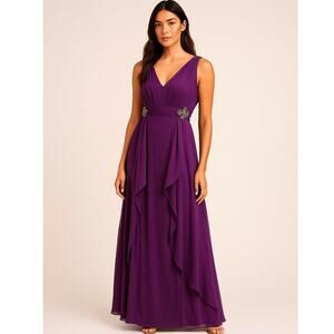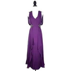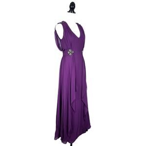 Badgley Mischka Collection Purple Silk Chiffon Gown with Jeweled Details Size 4