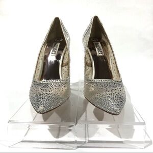 Badgley Mischka Collection Weslee Satin Pointy Toe Rhinestone Pump Heels Ivory