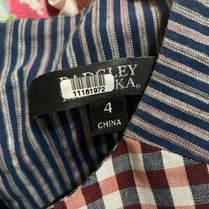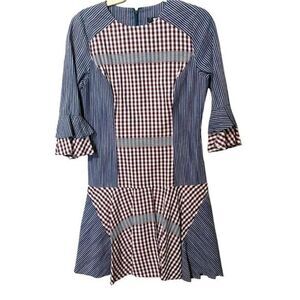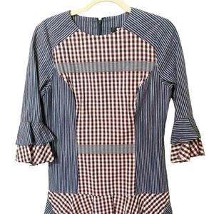 Badgley Mischka Collection Plaid & Striped Combo Flounce Plaid Day Dress Size 4