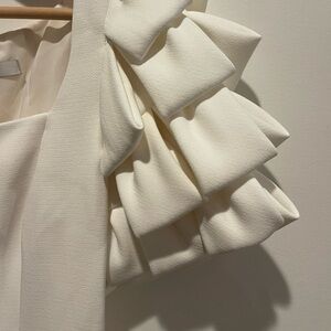 Badgley Mischka Cream Midi Dress Puff Origami Sleeves Square Neck size 8 NWOT