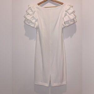 Badgley Mischka Cream Mini Dress with Puff Sleeves and Square Neck size 8 NWOT