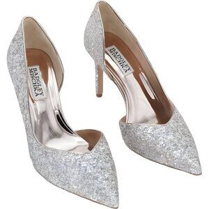 Badgley Mischka Daisy II D'Orsay Pointed Toe Pumps Silver Glitter US 6