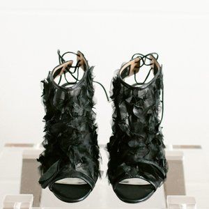 Super cute black leather and mesh with back tie booties! These were worn once in a styled shoot. They are SO GORGEOUS!!