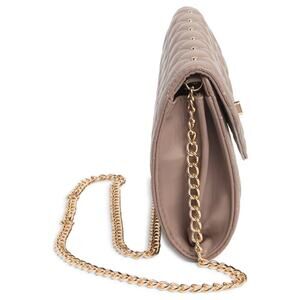 Gleaming studs shine along the diamond quilt stitching of a compact envelope bag featuring a chain crossbody strap.