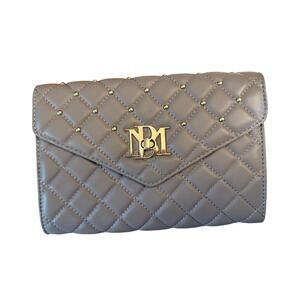 Badgley Mischka Diamond Quilt Convertible Crossbody Bag Taupe Studded Purse NWT