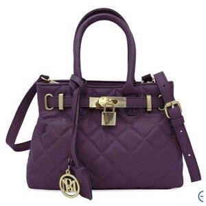 Badgley Mischka Diamond Quilted Mini Tote Crossbody Bag Purple Gold Hardware