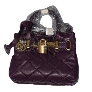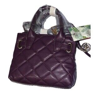 Badgley Mischka Diamond Quilted Mini Tote Crossbody Bag Plum Gold Hardware NWT