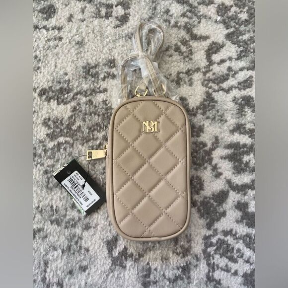 Badgley Mischka Diamond Quilted Oval Crossbody Phone Case in beige NWT MSRP $59
