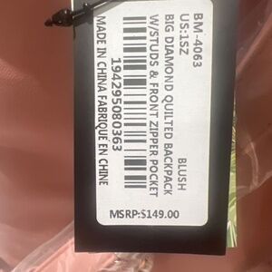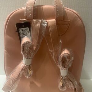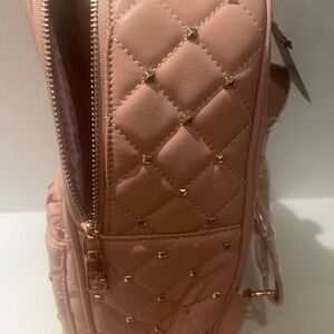 NEW with Tags. Vegan leather. Beautiful gold diamond studs on light pink quilted vegan leather. Backpack style purse. Adjustable straps. Beautiful and clean inside and out. NEW Never Used Size 12” h X 9” W and 4.5” deep.