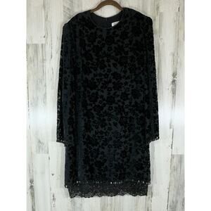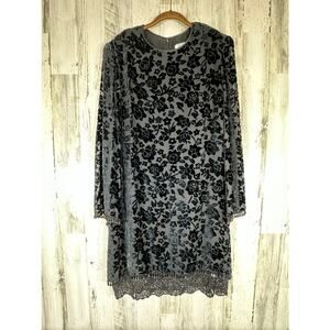 Badgley Mischka Dress Size 14 Black Floral Velvet Burnout Sheer Beaded Lace Mesh