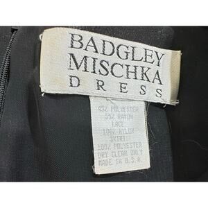 Item: Badgley Mischka Dress Black Floral Velvet Burnout Semi Sheer Sleeves Beaded Lace Mesh
