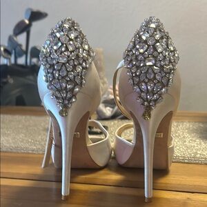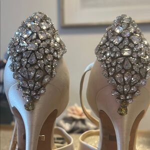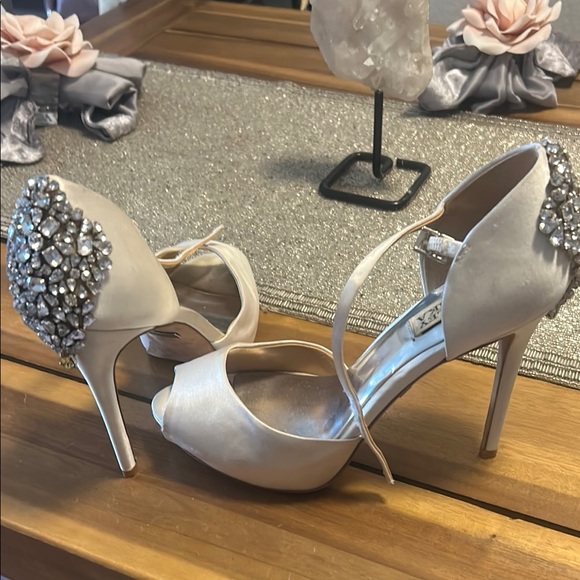 Badgley Mischka Elegant Satin Peep-Toe Heels with Crystal Embellishments