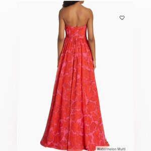 Badgley Mischka Elegant Strapless Floral Dress in Red and Pink size 12