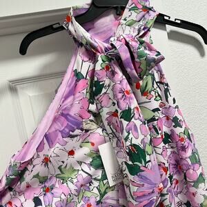 NWT Belle by Badgley Mischka Elise Georgette Floral Turtleneck Sleeveless Back Tie Waistless Trapeze Mini Dress Size 4