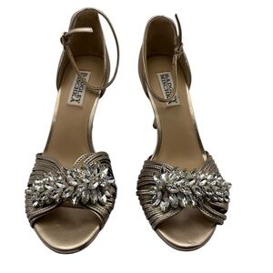 Badgley Mischka Everose Rhinestone Leather Heels Sz 6 Sample Wedding Ball Dance