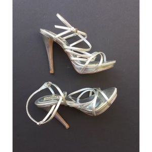 Badgley Mischka FIERCE Strappy Silver platform sandals heels SZ 7M Retail-$175