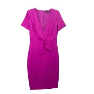 Badgley Mischka Faux Tie-Front sheath midi Dress Size 8 Fuchsia pink career