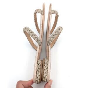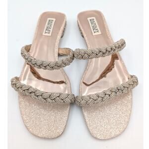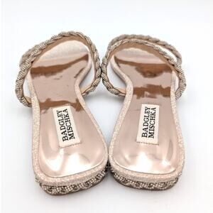 Badgley Mischka Femme Embellished Flat Sandal Women's Soft Gold Size US8 EU39