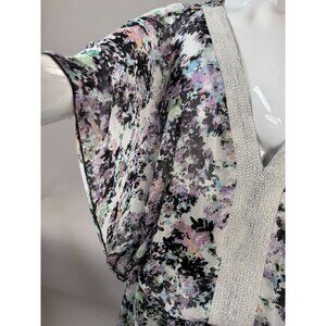 Badgley Mischka Floral Beaded V-Neck Blouson Top Gathered size L 100% Polyester