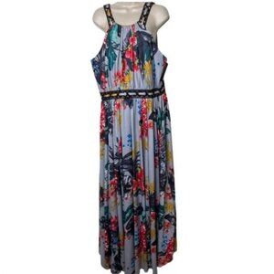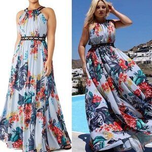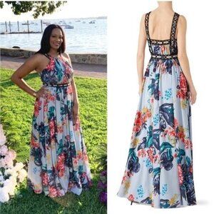 Badgley Mischka Floral Grommet Maxi Gown Dress Size 20 Blue Formal Wedding