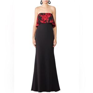 Badgley Mischka Floral Popover Gown, Mesh, Floral Applique, New, Size 14