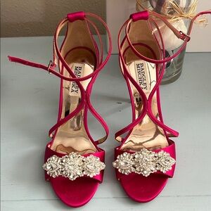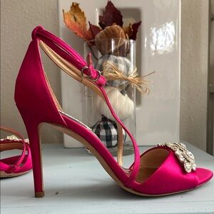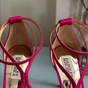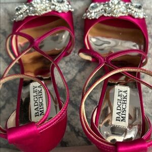 Chic fuchsia heels with sparkling embellishments. Strappy design by Badgley Mischka. Ideal for a glamorous look. They have been worn- look at pics carefully. Still have a lot of life.