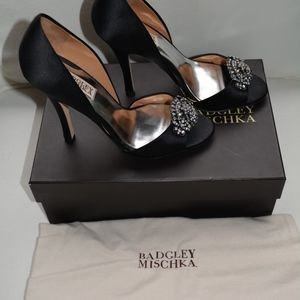 Badgley Mischka GIA black satin d'Orsay heels 7.5M